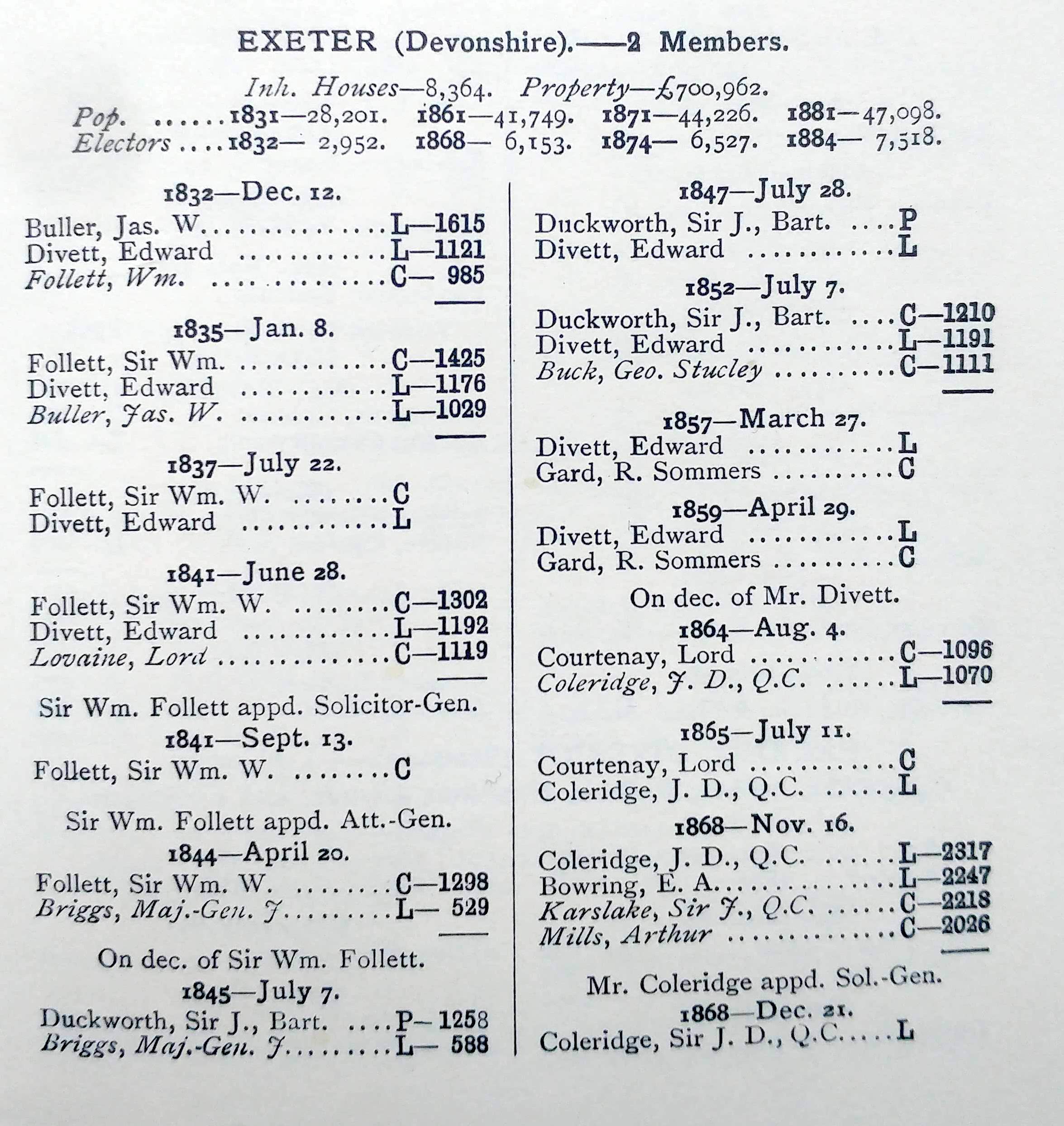 To make matters more complicated Exeter’s list of registered voters was pored over each year by party lawyers who sought to disfranchise their opponents’ supporters for all manner of technical reasons in the annual registration court. As with many other constituencies across England, in Exeter it was the Conservative lawyers and election agents who proved most adept and ruthless at removing their opponents from the rolls.