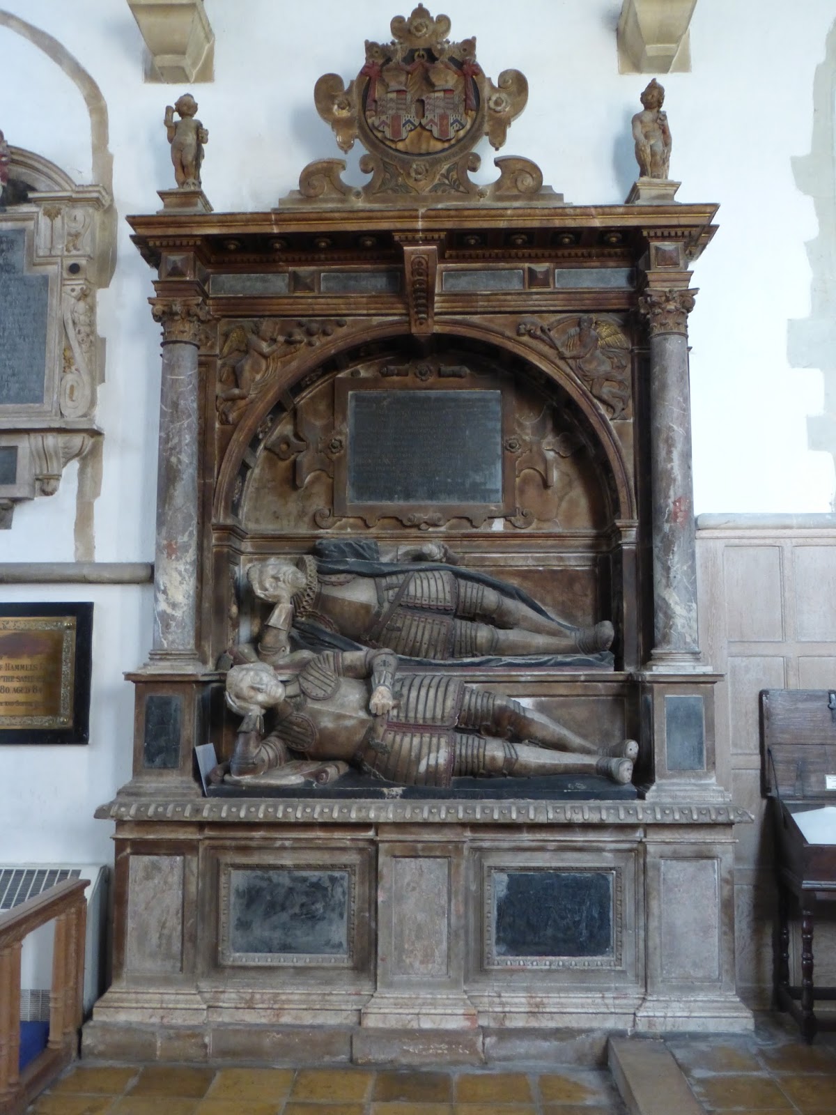 Two points should be emphasised at this juncture. First, while group monuments were quite common in this period, they almost invariably represented members of the same family, generally husbands and wives, perhaps accompanied by some of their children. Where two or more adult men were commemorated, they were normally brothers, as in the memorial at Braughing, Hertfordshire to John and Charles Brograve. On that basis, an epitaph to two men who were not closely related would have struck contemporaries as unusual.