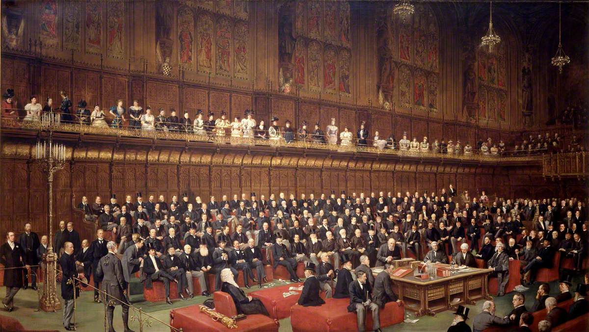 The Home Rule Debate in House of Lords, 1893, Gladstone’s Second Bill Rejected, Marquess of Salisbury Speaking; Dickinson Brothers and Joshua James Foster (1893); Image credit: Parliamentary Art Collection via Art UK
